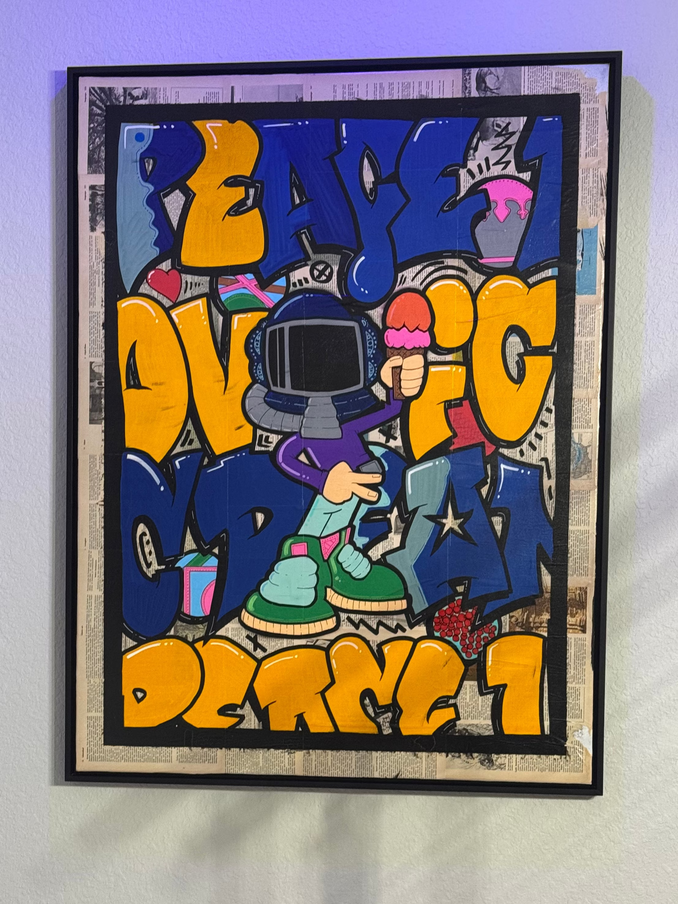 Channels the raw energy of the streets and the playful freedom of cartoons.